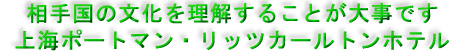 | ??? やはり、中国の文化を理解して尊重することが大切だと思いますが、私どもはホテルのビジネスですから、リッツカールトンのベーシック(企業理念)に基づいて仕事に携わらなければいけません。 |